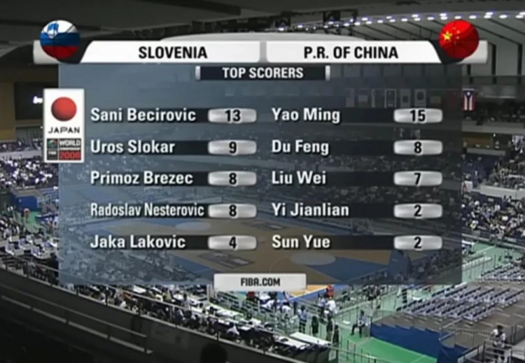 其实小组赛打到最后一场,双方的战术都不是秘密,斯洛文尼亚上来就疯狂绕前姚明,破坏中国队传球路线,姚明前半节接球非常困难,中国队一堆传球失误。